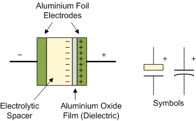 Aluminum Capacitors are capacitors that are made of oxide film on aluminum foils with a strip of absorbent paper between them which is soaked in an electrolyte solution and all these design can be sealed in a can. Basically there are two types of Aluminum Electrolytic Capacitors they are plain foil type and etched foil type.